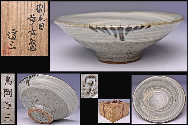 > 島岡達三 ★ 刷毛目 草文 碗 ★ 共箱 栞 ★人間国宝 ★ 師: 浜田庄司 ★ 平茶碗や鉢にも ★検 島岡桂 ゲルトクナッパー 松崎健