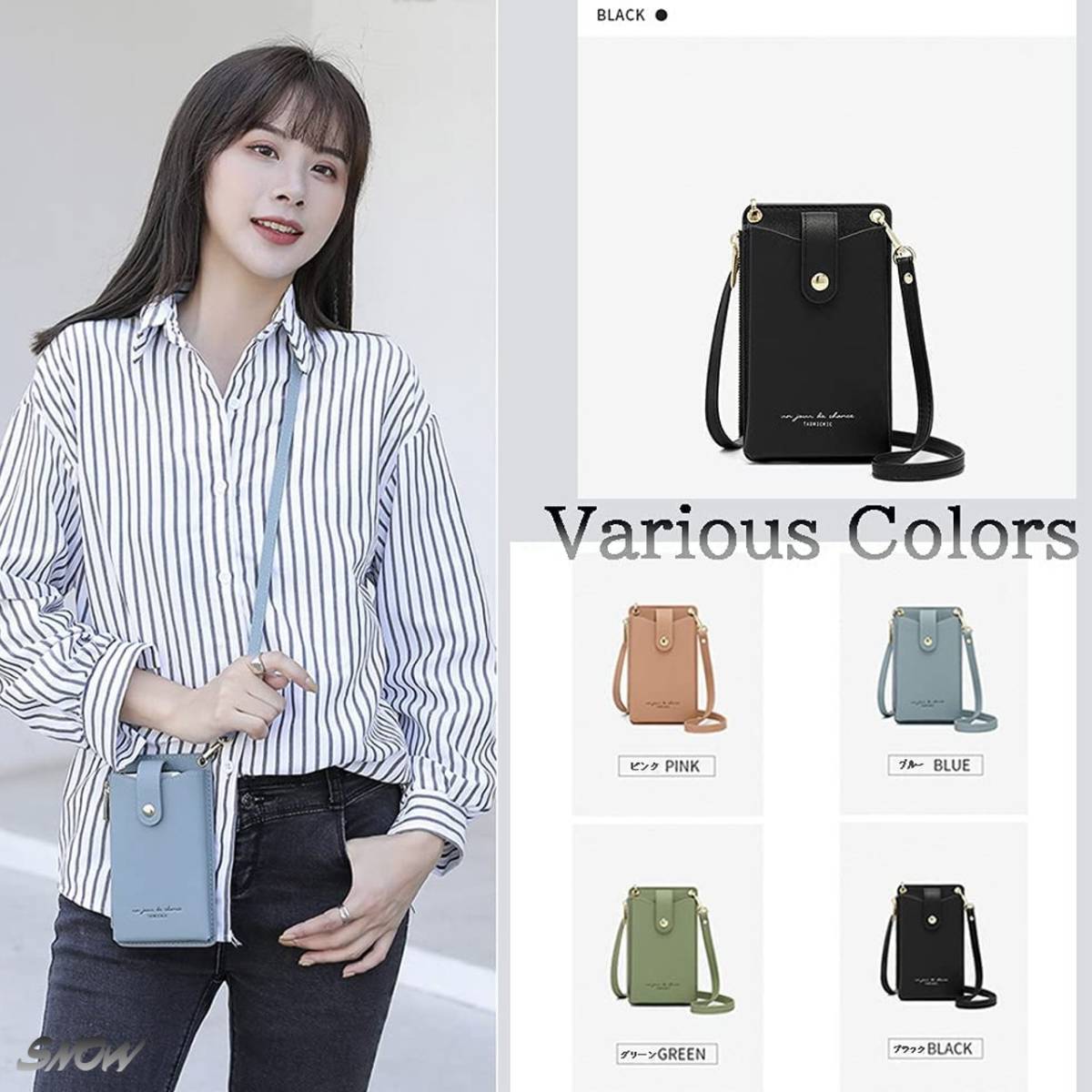 - ブラック 上品で高級なPU素材 人気 可愛い 財布 シンプル おしゃれ スナップボタンのフタ付き ポシェット ポーチ バッグ スマホショルダー