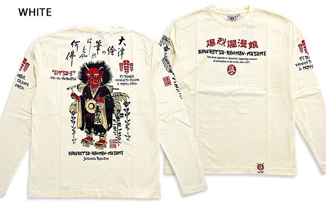 > 大津絵 鬼の念仏ロングTシャツ◆爆烈爛漫娘 ホワイトXXLサイズ(サイズ46) RMLT-317 和柄 和風 長袖Tシャツ ロンT エフ商会 efu