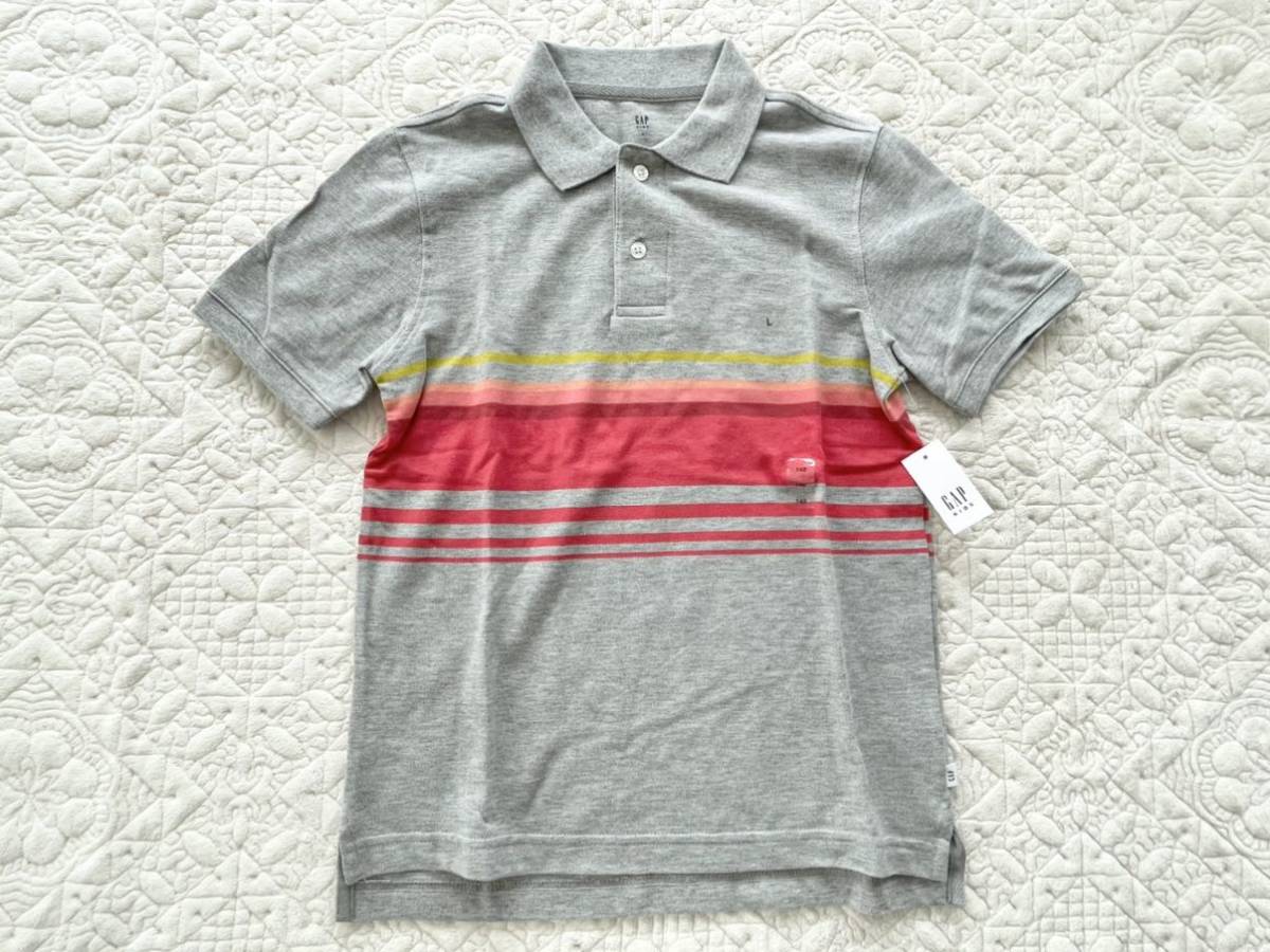- ★新品★GAP KIDS★カラフル ボーダー ポロシャツ★140★グレー★