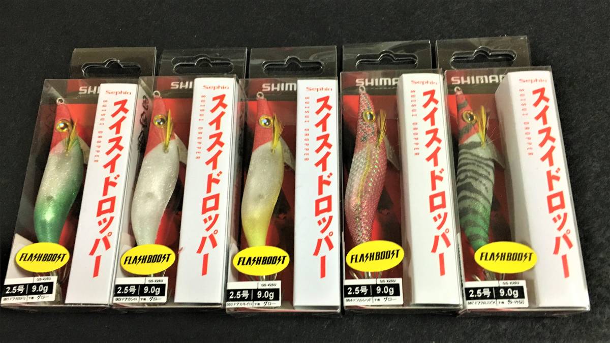 > スイスイドロッパーフラッシュブースト 2.5号 Fアカミドリ・Fアカシロ ・Fアカキイロ・Fフルレッド・F赤緑エビケイムラ 5本セット