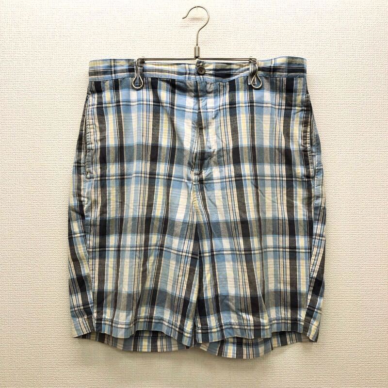 > 【DG007】CHAPS W34 チェック柄ハーフパンツ ライトブルー ブランド古着 チャップス ショートパンツ 送料無料