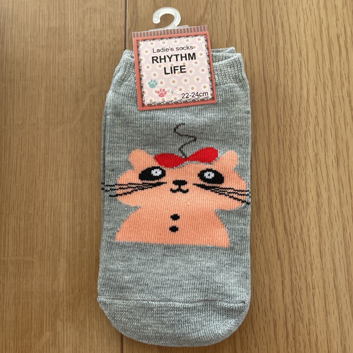 - 新品 靴下 綿混 22~24㎝ 定価385円位 レディース キッズ ポイント消化にも グレー 送料無料