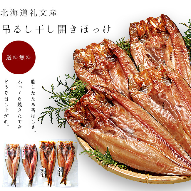 > 吊るし干し開きほっけ 開きほっけ ×2枚 ほっけ干し醤油漬 ×2枚【北海道礼文産ホッケ 真ほっけ開き 真ほっけ醤油】【送料無料】