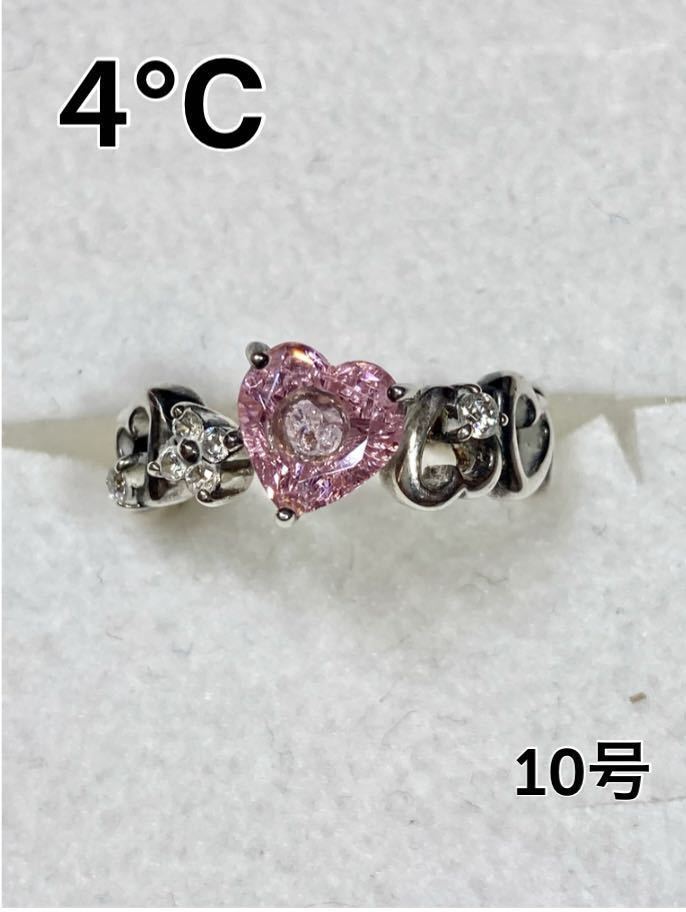 - 【ケース付き 美品】4℃ ピンク ダイヤ ハート リング ヨンドシー カナル ルリア シルバー 指輪 10号 ジルコニア サファイヤ オープン 一粒