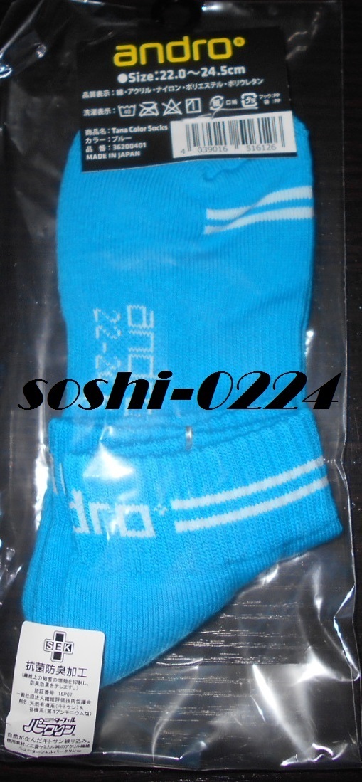 - 【卓球用ソックス】履くならやっぱり日本製★andro/アンドロ★ターナカラーソックス★ブルー★22.0~24.5cm★36200401