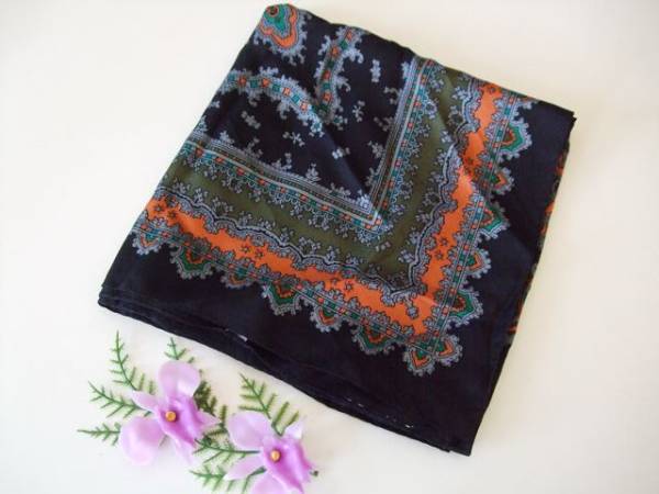 - (^_^)良品/Vogline/大判スカーフ/ボグライン/深緑/シルク100%/OO