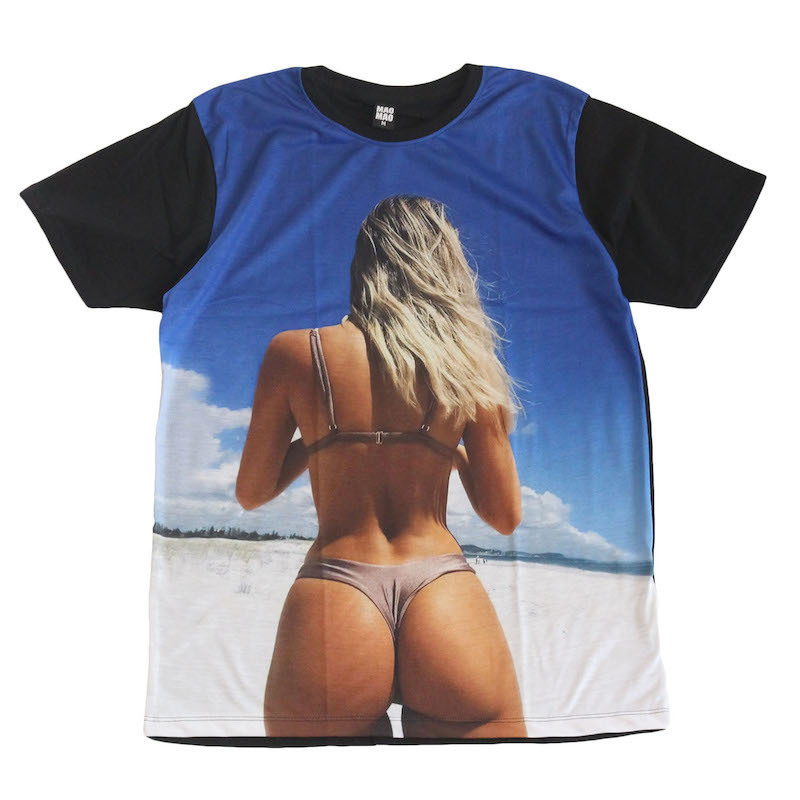 > セクシーガール エロ カワイイ おしり ビーチ Tバック 海 ストリート系 デザインTシャツ おもしろTシャツ メンズ 半袖★tsr0641-blk-xl
