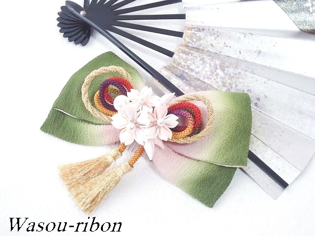 - ⚜ 和装リボン / 正絹髪飾り,2点set【緑x紫x橙色xピンク】振袖、袴、七五三