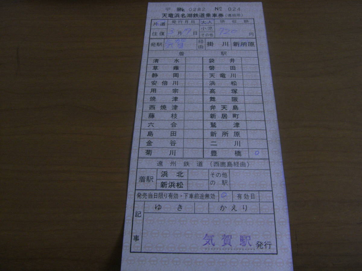 - 天竜浜名湖鉄道乗車券(連絡用) 気賀駅発行 0282-024