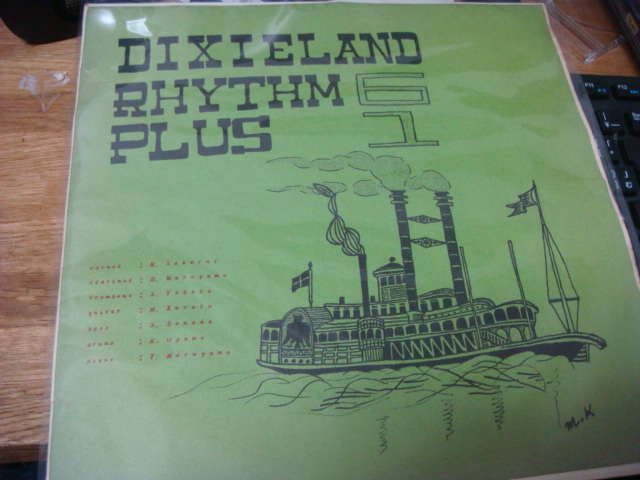 さて、これは大変なレコードです。内容はアマチュアによる、ディキシーランドジャズのようです。どうも私家盤としてだしたもののようですね。メンバーはコルネット桜井宗和、ドラム小川紀元、クラリネット丸山晴章、ピアノ丸山誉夫、ベース薗田樹、ギター倉田正昭、トロンボーン横田修一・・・とありますが、検索サイトで検索をかけても出てきません。演奏は熱がこもってますが、ところどころ危うくて、「AT THE JAZZ BAND BALL」なんか、テーマが危なすぎて怖いですが・・でも大変レアなものですね。しかも各メンバーの熱いジャズエッセーが8ページにわたって書かれたブックレットがついていて、その内容にも汗が・・・・。