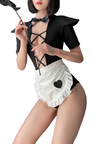 - ★送料無料 匿名発送★メイド風 レオタード & エプロン ウエイトレス フリフリ 可愛い コスプレ 衣装 キュート セクシー バスト強調652202