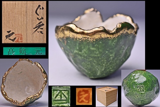 > 高鶴元 ★ 上野焼 ぐい呑 ★ 共箱 共布 栞 ★ 日本とアメリカで活躍される 氏独特の感性が光るオブジェの様な逸品 ★ 酒器 ★ 検 高鶴夏山
