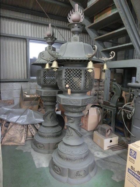 - 【1点限り】海蔵寺型台灯籠 龍巻 1対(2台)生地 合金製 落札後に着色・金箔押し・電装取り付け 高さ約210cm(7尺)寺院仏具