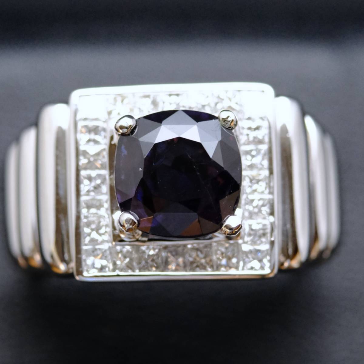- F2986 美しい大粒カラーチェンジタイプガーネット4.50ct 天然絶品ダイヤモンド1.16ct 最高級Pt900無垢メンズセレブリティリング