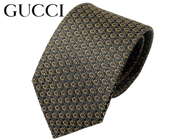 - グッチ GUCCI 643994 4E002 1375 ブラック系地 ブロンズ系ホースビット柄Xゴールド系G柄 ナロー ネクタイ