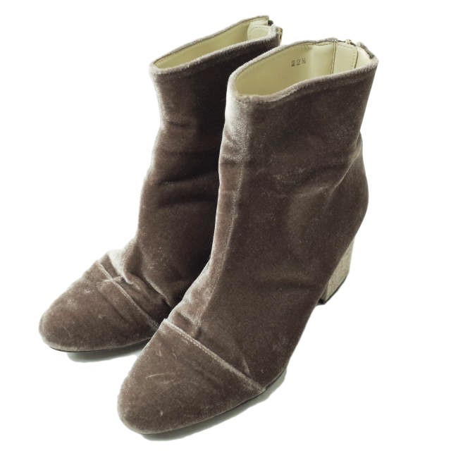 > ADAM ET ROPE アダムエロペ 日本製 ベルベットショートブーツ 22 1/2(22.5cm) スモークピンク ヒール ベロア バックジップ シューズ g6831