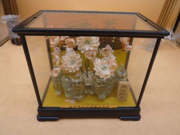 - 夫婦獅子 沖縄観光記念 魔除獅子 ガラスケース入り ビ6 送料無料 管ta 22Jul