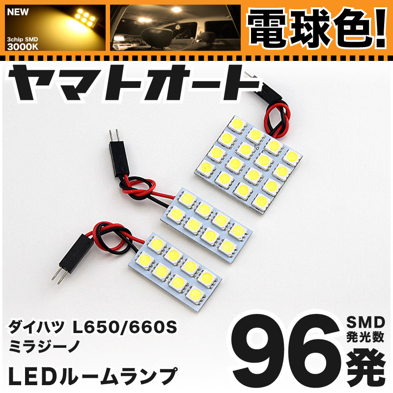 > ◆ミラジーノ L650S L660S ダイハツ ★電球色96発★ LED ルームランプ 3点セット [H16.11~H20.12] 【電球色 3000K程】パーツ 車中泊