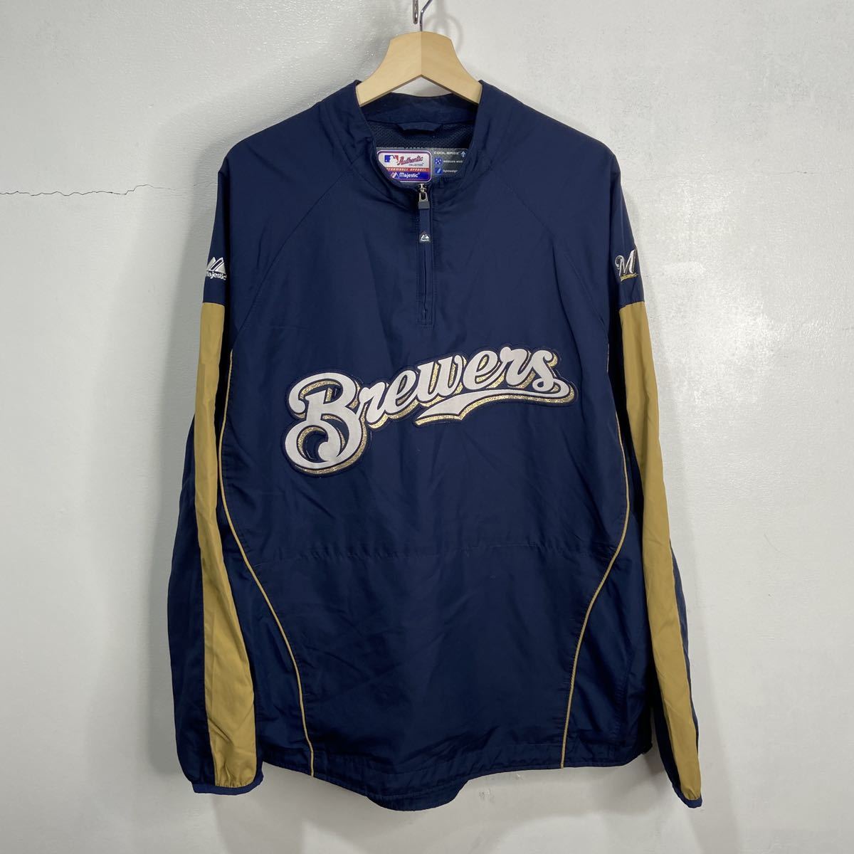 - ☆送料無料☆Brewers☆ブルワーズ☆ハーフジップチームジャケット☆L☆MLB☆ネイビー