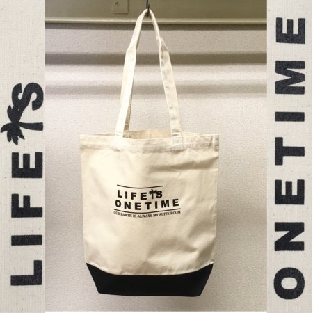 - オリジナル LIFE IS ONE TIME キャンバス トートバッグ■ナチュラル■人生1度きり■海 サーフィン ストリート アウトドア ハワイ