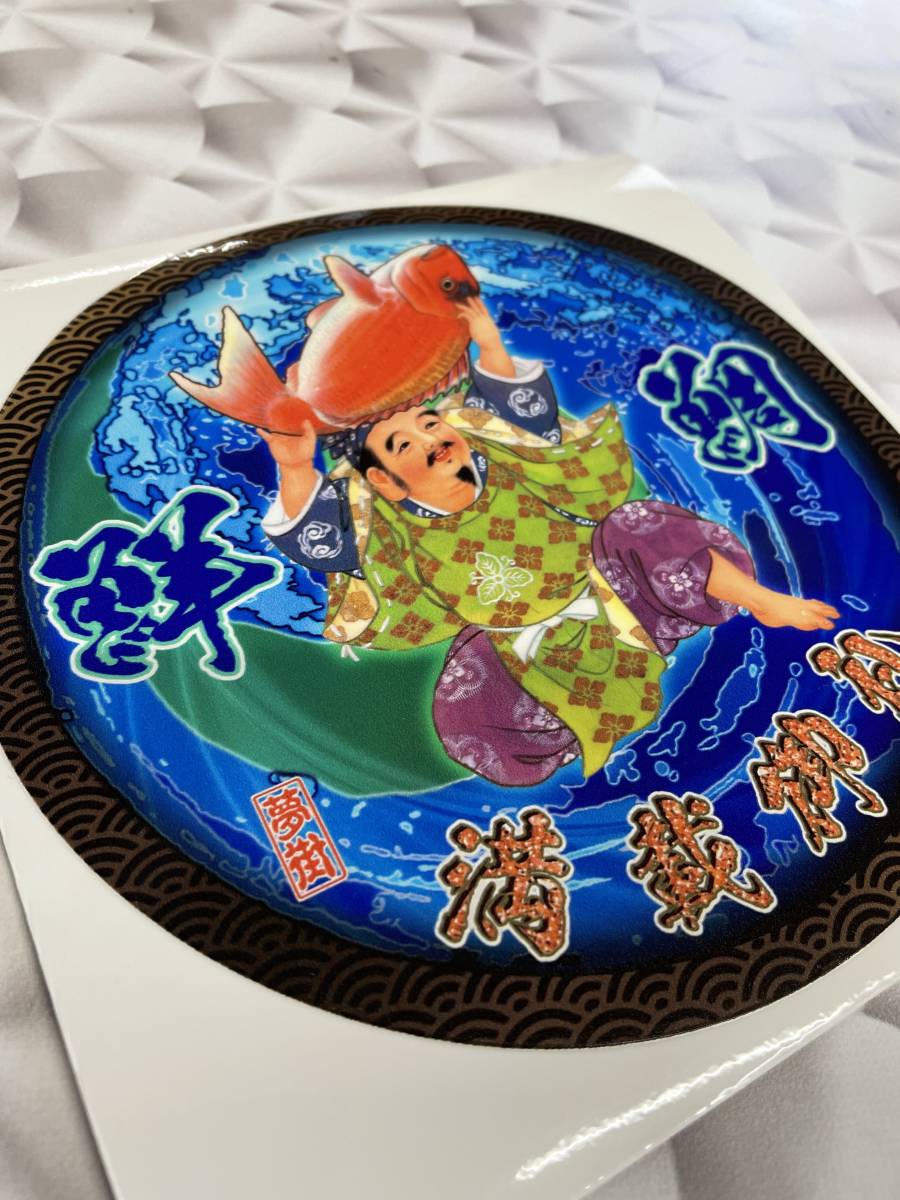 > 石巻発★夢街★七福神丸ステッカー鯛バージョン★満載御礼/ブルー★デコトラ★金華山★レトロ★漁師★釣り具★漁業★漁具★漁船★