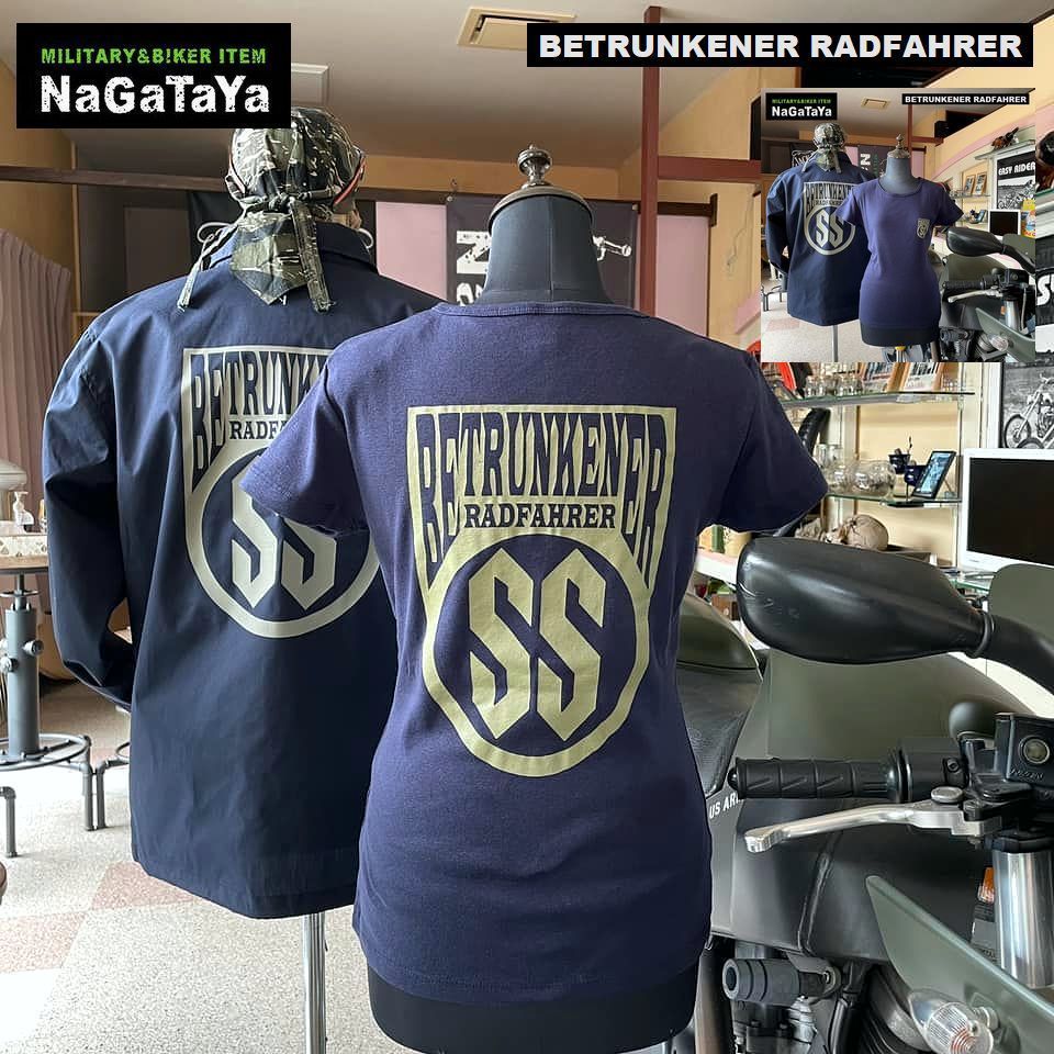 - BETRUNKENER RADFAHRER ベェトォンナ ラドファ エンブレム Tシャツ Lサイズ ネイビー レディース BIKER モーターサイクル