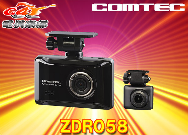 > COMTECコムテックZDR058前後2カメラ通信型ドライブレコーダー画像・映像をクラウドへ自動保存/駐車監視直接配線コード同梱