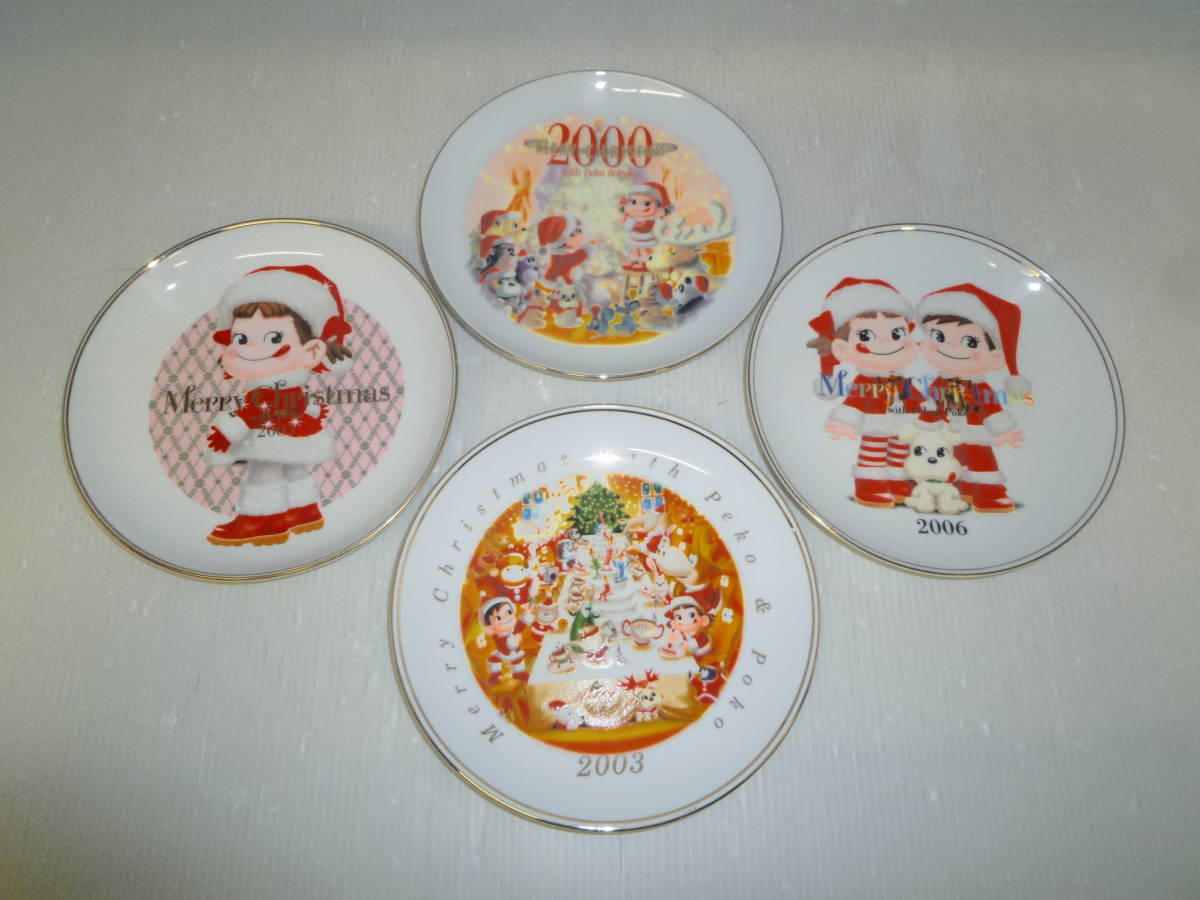> ●不二家 ペコちゃん ポコちゃん クリスマス プレート お皿 2000,2003,2005,2006 計4種 セット ※外箱無し 陶器 食器 ケーキ皿
