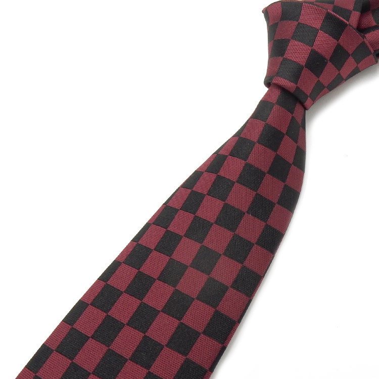 - 日本製ネクタイ ワイン×黒 市松模様/チェッカー柄 甲州織 洗濯機OK メール便OK EVT06-RD