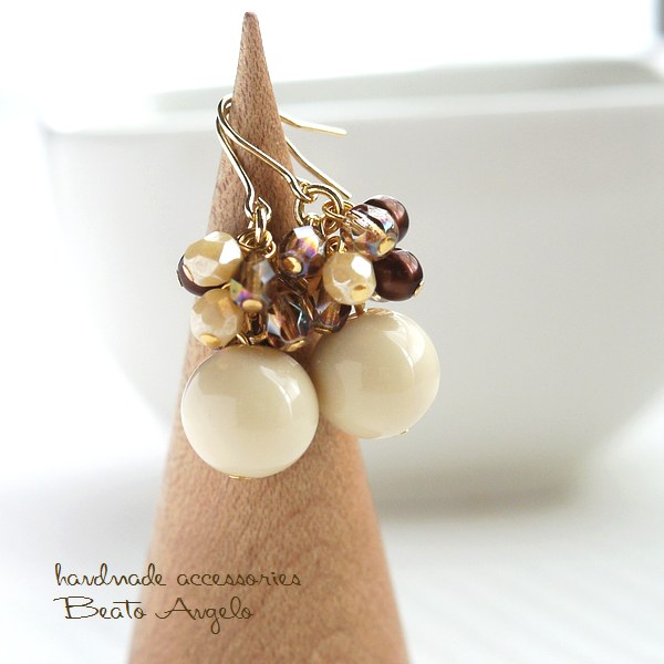 - ◆+angelo+ドイツビーズとチェコビーズのピアス(p-015)エクルー G r001 アイボリー