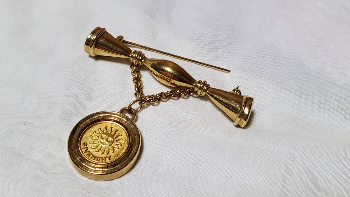 - 正規良 ジバンシィGIVENCHY クラシックラグジュアリー サンバーストブローチ フリンジチェーン ラウンドアート サークルコイン ロゴバッジ