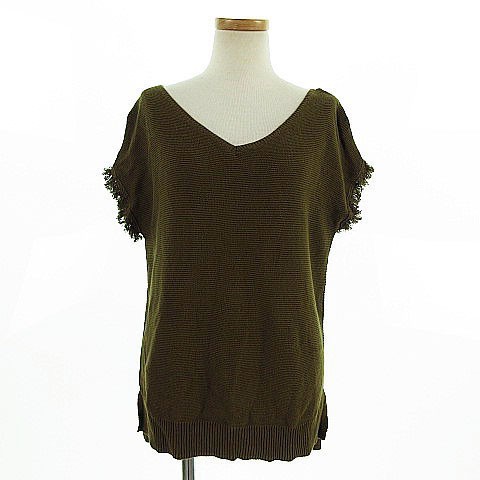 - ロペ ROPE ニット 半袖 フリンジ Vネック カーキ 38 レディース