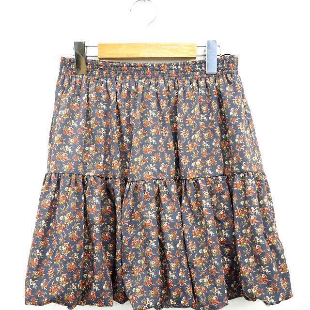 > プーラフリーム pour la frime スカート ボトムス フレア 花柄 ひざ丈 ダークグレー ピンク /MT42 レディース