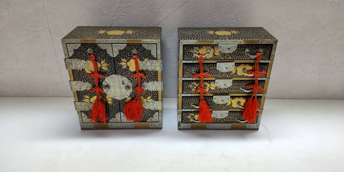 - 「雛人形飾り箪笥 2組」経年品【送料無料】「おとうさんのおもちゃ箱」00100526