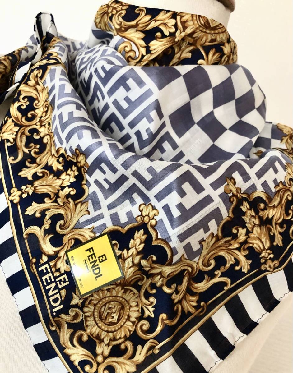 - 【レア柄】フェンディ FENDI◆大判ハンカチ ズッカ柄 ストライプ織りミニスカーフ★膝掛け(1012D102600)