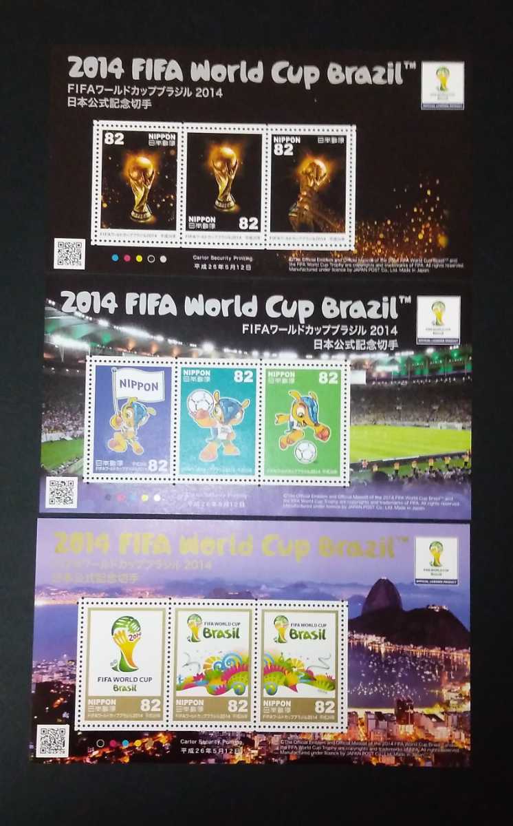 - 2014年・記念切手ーFIFAワールドカップーブラジル.シート(3種類)