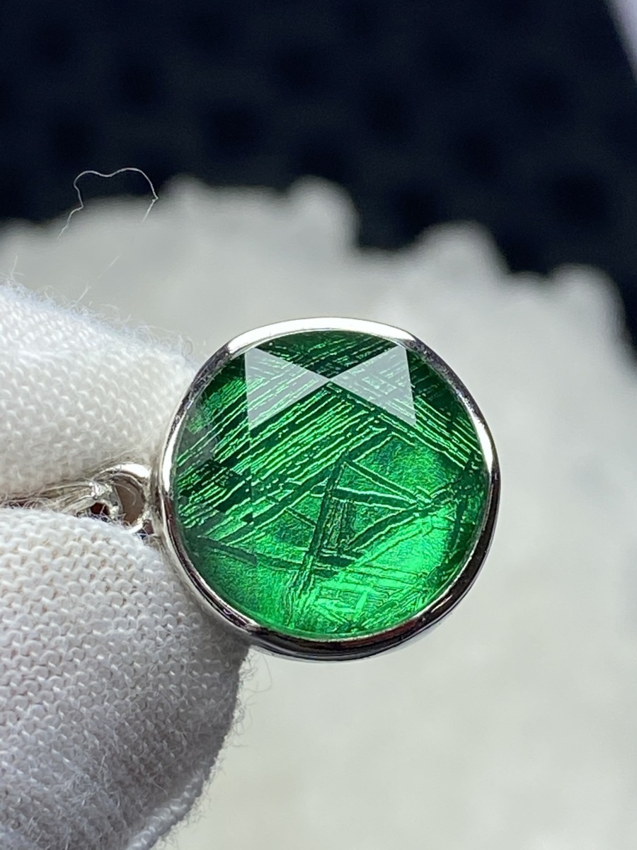 - 即決 051 月に近い★【グリーンギベオン隕石】★ 六芒星ペンダント 13.5x7mm