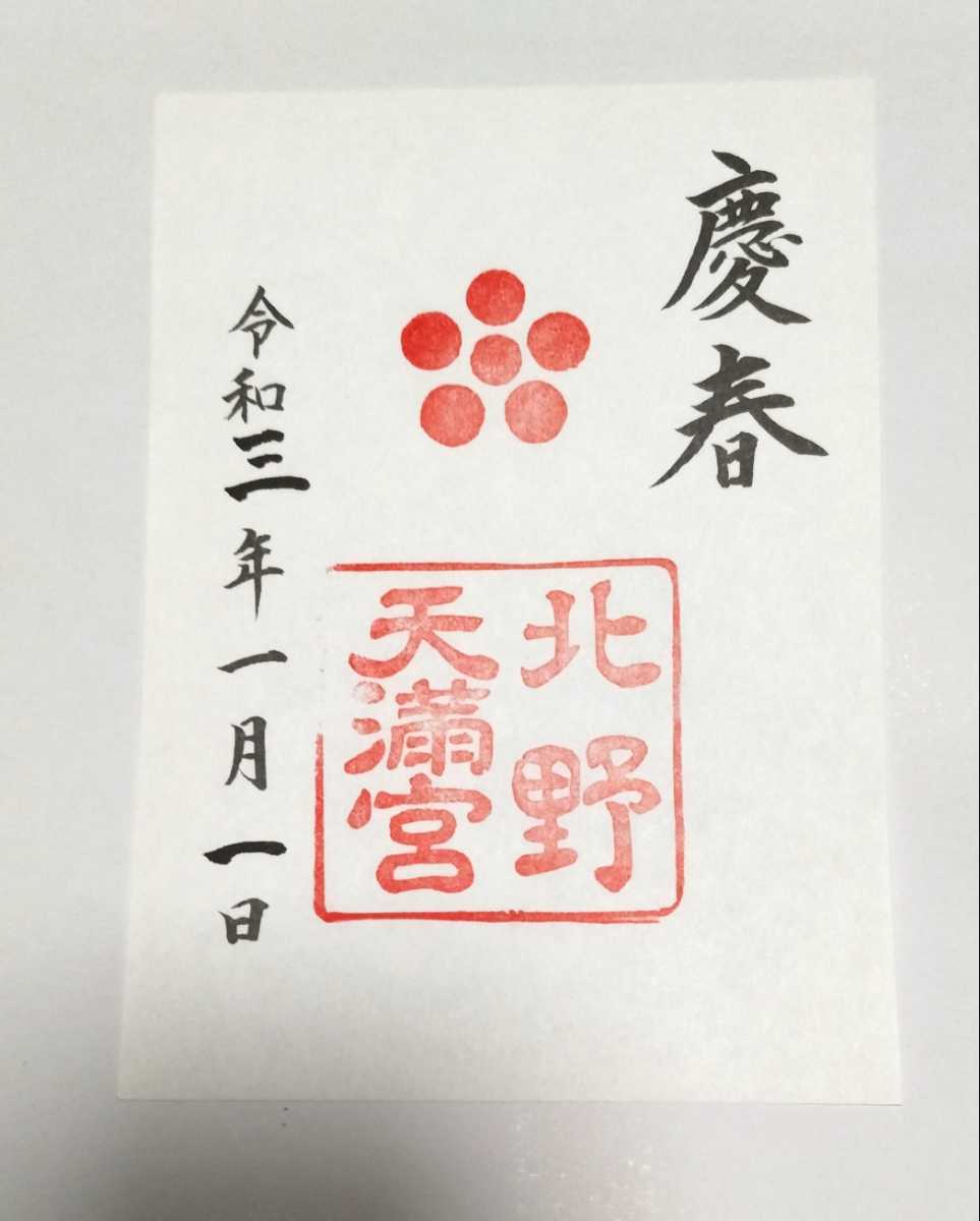 - 京都 北野天満宮『令和三年一月一日』御朱印