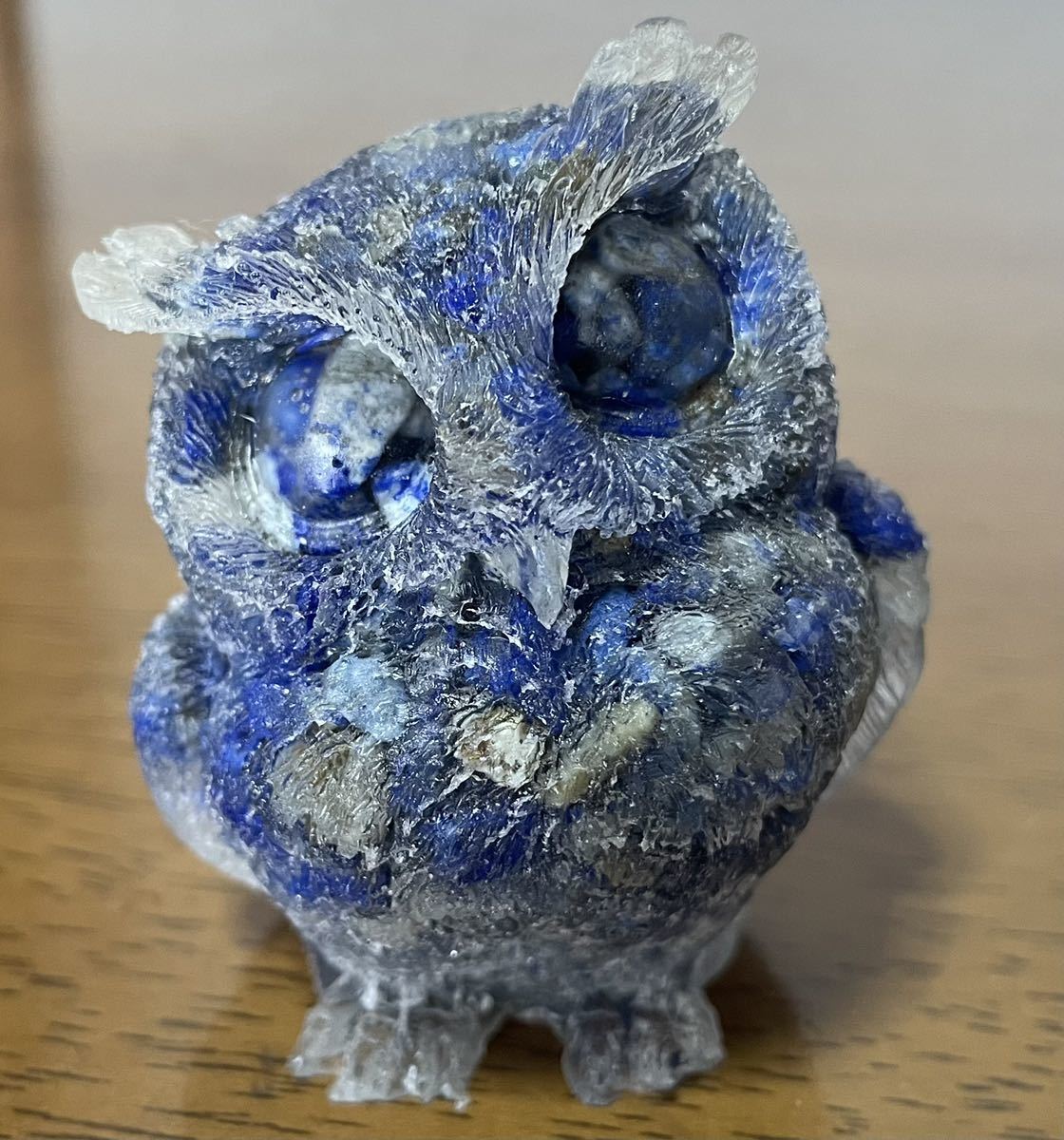 > ラピスラズリ フクロウ 金箔入オルゴナイト 風水晶 天然石 置物 縁起物 青金石 インテリア 小物ファッション ブルー 幸運 ラッキー 鳥 雑貨