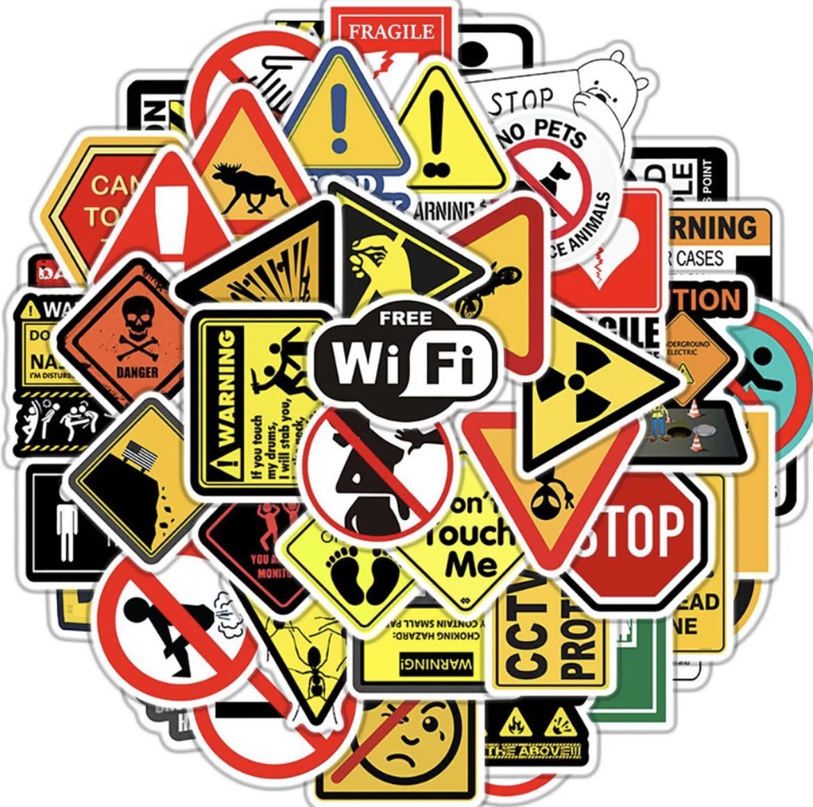 > 50枚 警告ステッカー ステッカーボム 防水 ステッカー スーツケース ギター ノートパソコン 貼り付 クール warning 警告 危険 禁止 1781