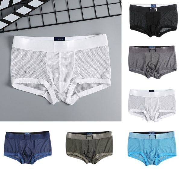 - メンズレースボクサーパンツ レース下着 レースパンツ メッシュ 男性用 ボクサーパンツ ローライズ 透け 網 H0091 グレー L