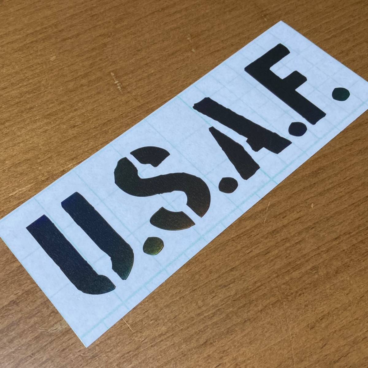 - 限定カラー メタリックブラック系 U.S.A.F. ロゴ カッティングステッカー ホログラフィック系×クリアブラック USAF