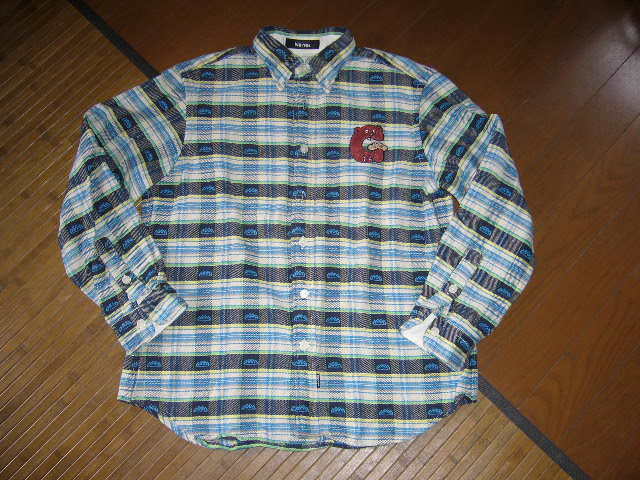 - 31-89♀:Ne-net ネネット ワッペン付きネ厚手シャツ 長袖 siz2 色.青×紺ベース エイネット
