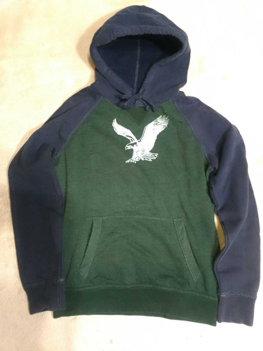 > AMERICAN EAGLE◆アメリカンイーグル プルオーバー スウェット パーカー イーグルプリント メンズ サイズXS 深緑/紺