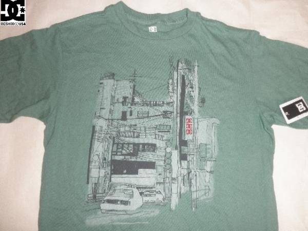 - USA購入 ボーダー系【DC SHOES】街並みプリントT US BOY'S XL 緑