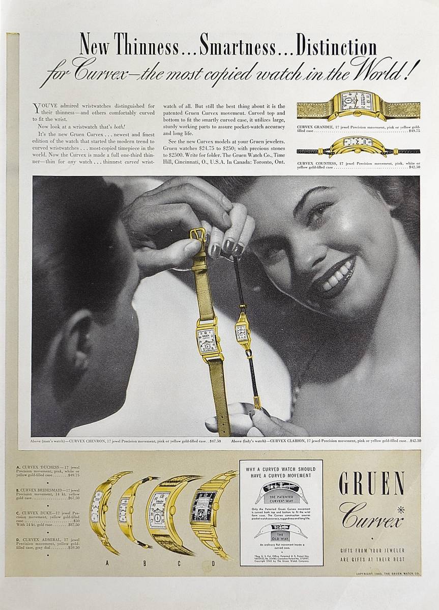 - 稀少!時計広告/1940年グリュエン 時計広告/Gruen Curvex Watches/Q