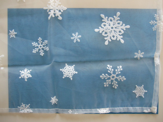 - オーガンジー 白・ホワイト ふわふわ 雪の結晶 模様 130cm×130cm クリスマス 使い方いろいろ