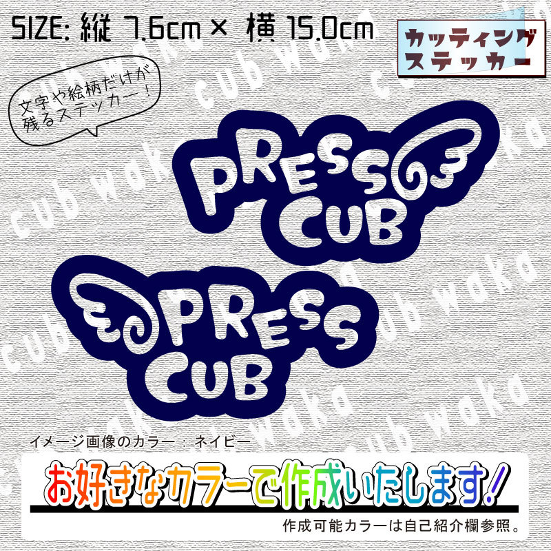 > サイドカバー用②PRESSステッカー2枚組 文字絵柄だけ残るカッティングステッカー・PRESSCUB・プレスカブ・リアボックス・サイドカバー