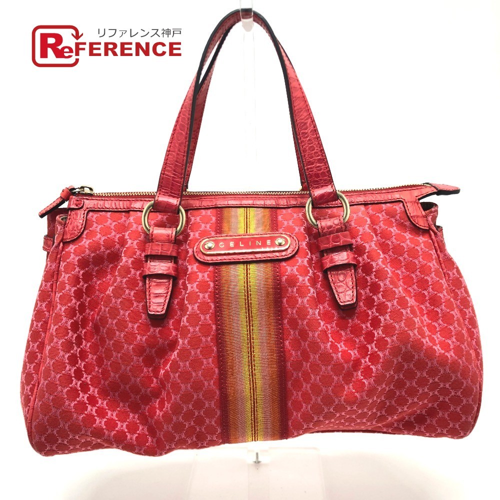 > CELINE セリーヌ マカダム トートバッグ ハンドバッグ キャンバス/レザー レッド系 レディース【中古】
